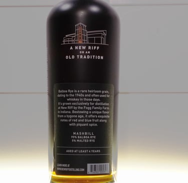 Why I chose it: New Riff was 2022's Advent calendar surprise distillery for me and made many participants' top three pours last year. I discovered this particular whiskey at an event filled with amazing pours where it finished as a top 5 pick for me among the 20+ premium whiskies I sampled while experiencing the Eminem cover band "Shady". Factoring in the price, I think it's an unbelievable pour and value. The Balboa heirloom rye grain gives a unique flavor that just popped out to me and was one that I had to find. This bottle took the longest journey to track down, requiring supplemental shoppers and a trip to Indiana (thank you Justin!). Our second bottled-in-bond (BIB) and first BIB rye of the calendar.