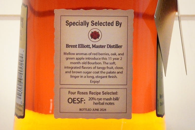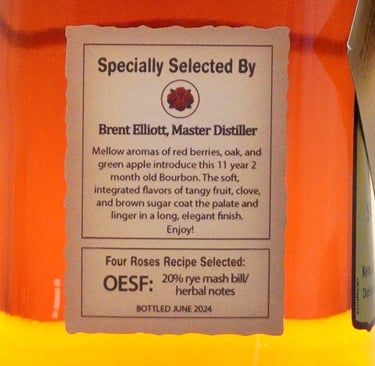 Why I chose it: Because they're great. Sadly, the pick for last year's calendar was the first semi-dud from Four Roses I've ever had. We needed to redeem the brand with a distiller pick (selected by the distiller to be sold in their gift shop. Those don't miss). They have 2 variants to their mashbill and this is the lower rye (20% vs 35%) of the two. On the higher end of their single barrel proofs and aged over 11 years. We should be in for a treat!