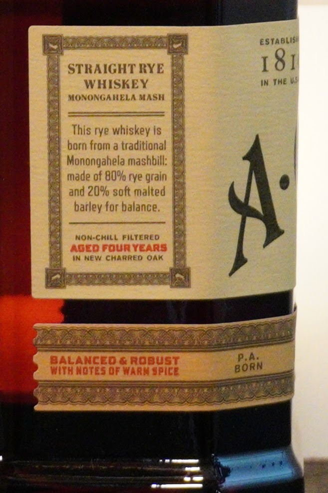 Mashbills: 80% Monogahela Rye (from an area of PA), 20% malted barley
