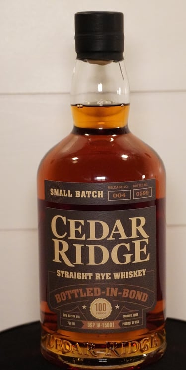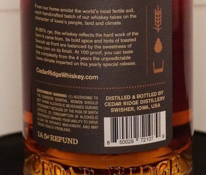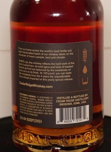 Why I chose it: I make it an objective to try some new distilleries and states that are unfamiliar to the calendar. I saw several positive reviews from YouTubers about Cedar Ridge, particularly their ryes. I was hunting for the Port Cask Finished Straight Rye at 105 proof (that really excited one reviewer), but I never found it. Their distillery is in Swisher, Iowa (just south of Cedar Rapids), and they only use Iowa corn in their whiskey (but it looks like their rye and barley are grown in Saskatchewan, Canada). They've been around for 20 years, so let's give it a try!