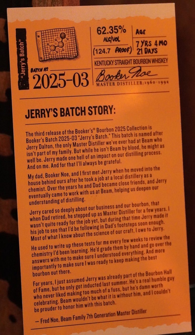 Why I chose it: It's been a while since I've tried a recent Booker's, but when I saw that one of the releases this year was called Jerry's Batch, it seemed an appropriate time to revisit. This was their 3rd batch in 2025 and a new mashbill for the calendar. This is the second hottest proof of the month, trailing only day 3.