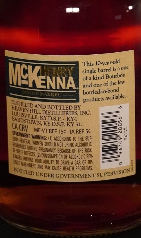 Distiller's page: https://heavenhilldistillery.com/henry-mckenna-single-barrel.php