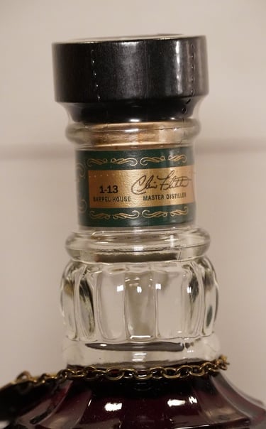 As one astute observer noticed, this distillate is dark! Jack has a handful of Rickhouses that are the highest point on the property on a piece of land called Coy Hill. Those are known to be rickhouses 8 through 13, and they endure the highest temperature swings on the property, helping to accelerate aging. This bottle spent its life in rickhouse 13. The bottles have their barrel house, as pictured as 1-13. The 1 indicates an on-site rickhouse at the distillery location.